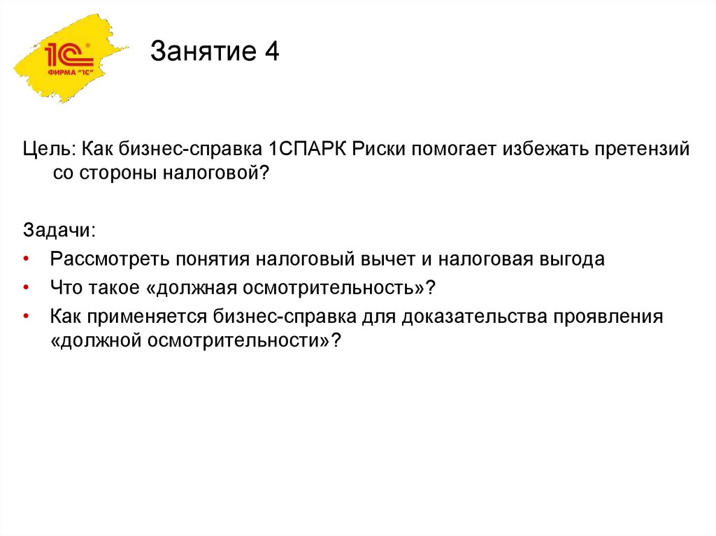 Цель: Как бизнес-справка 1СПАРК Риски помогает избежать претензийсо стороны налоговой?