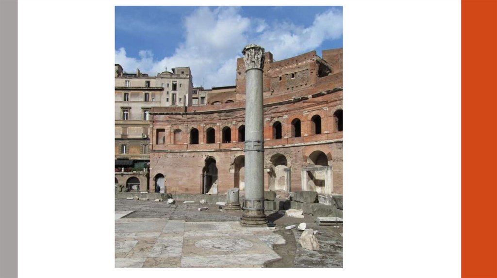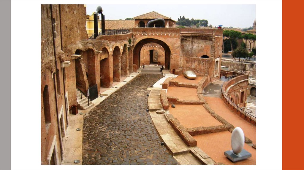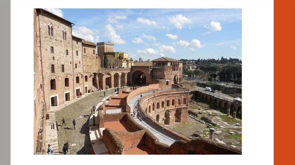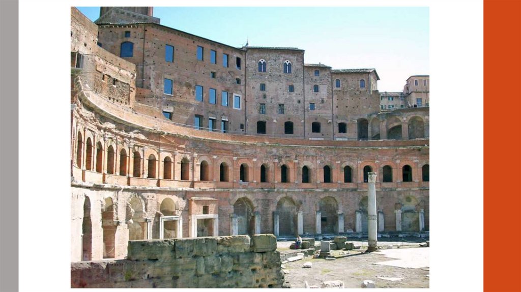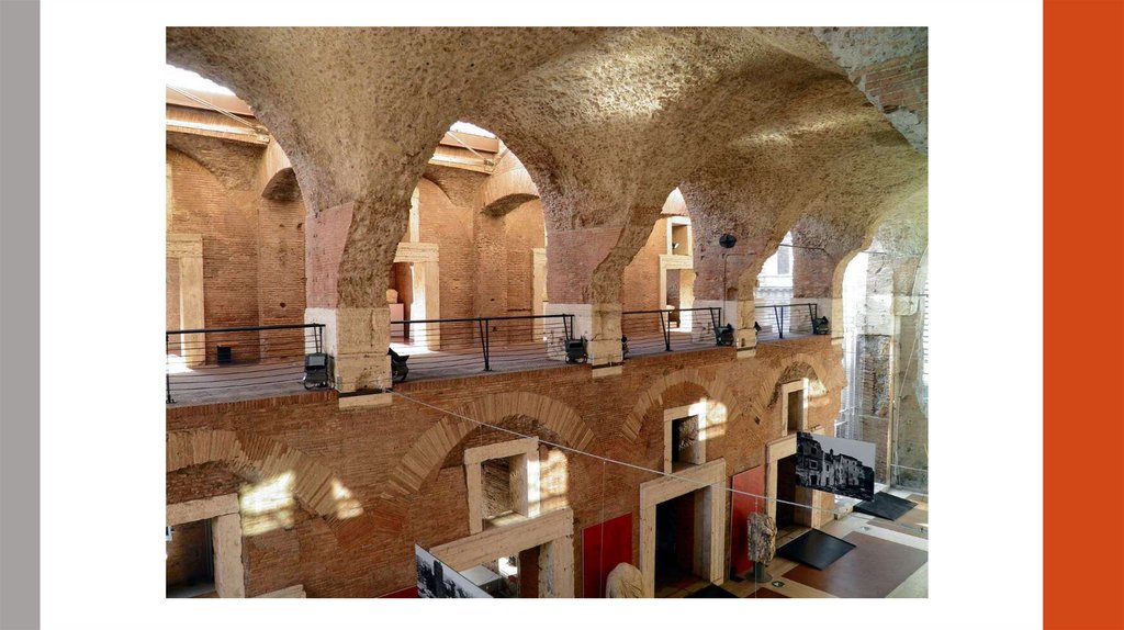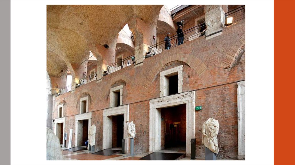 Помимо торговых площадей, Рынок Траяна включал в себя специальные заведения,в которых происходила бесплатная раздача продуктов питания малоимущим.