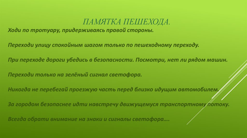 Переходи улицу спокойным шагом только по пешеходному переходу.