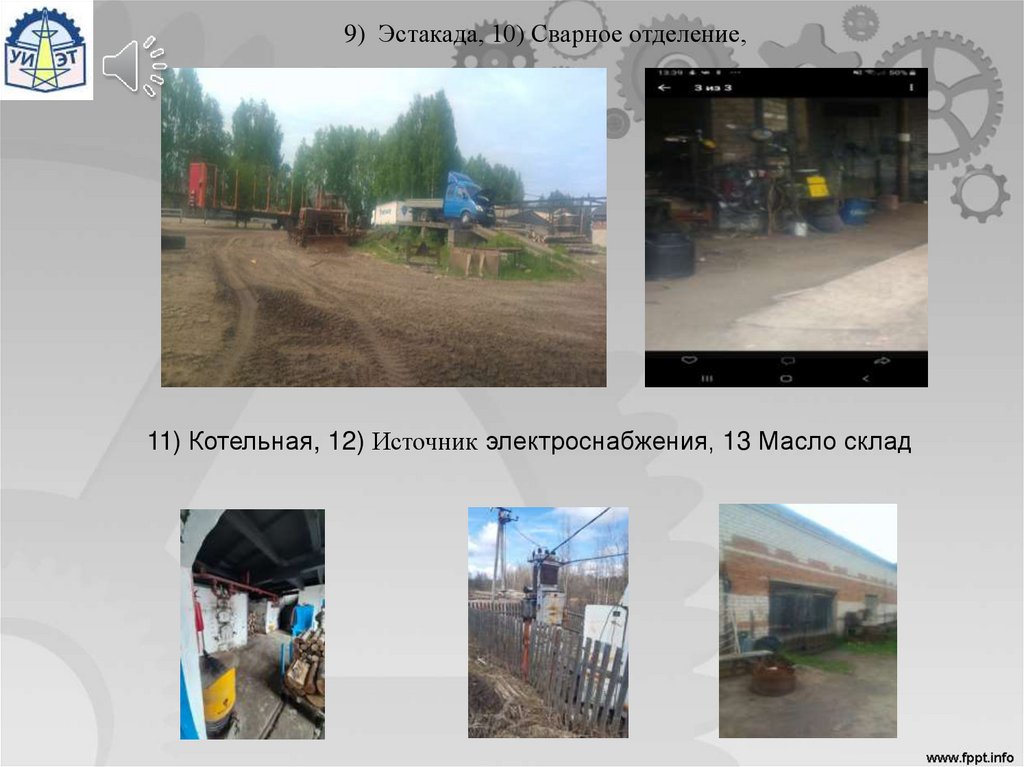 9) Эстакада, 10) Сварное отделение,11) Котельная, 12) Источник электроснабжения, 13 Масло склад