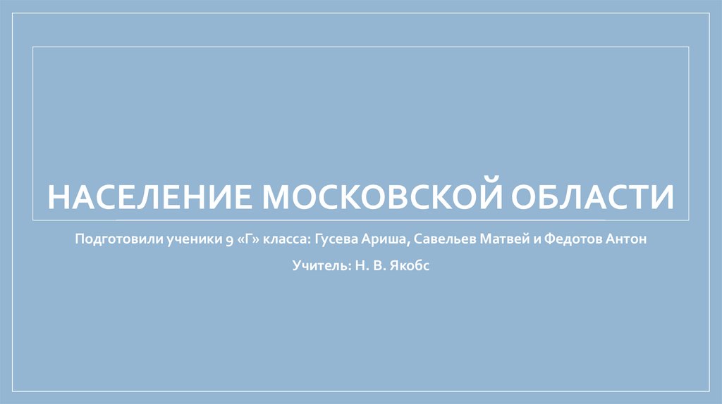 НАСЕЛЕНИЕ МОСКОВСКОЙ ОБЛАСТИПодготовили ученики 9 «Г» класса: Гусева Ариша, Савельев Матвей и Федотов Антон