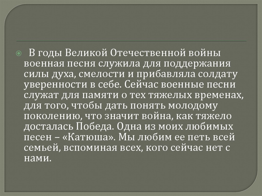 В годы Великой Отечественной войнывоенная песня служила для поддержания