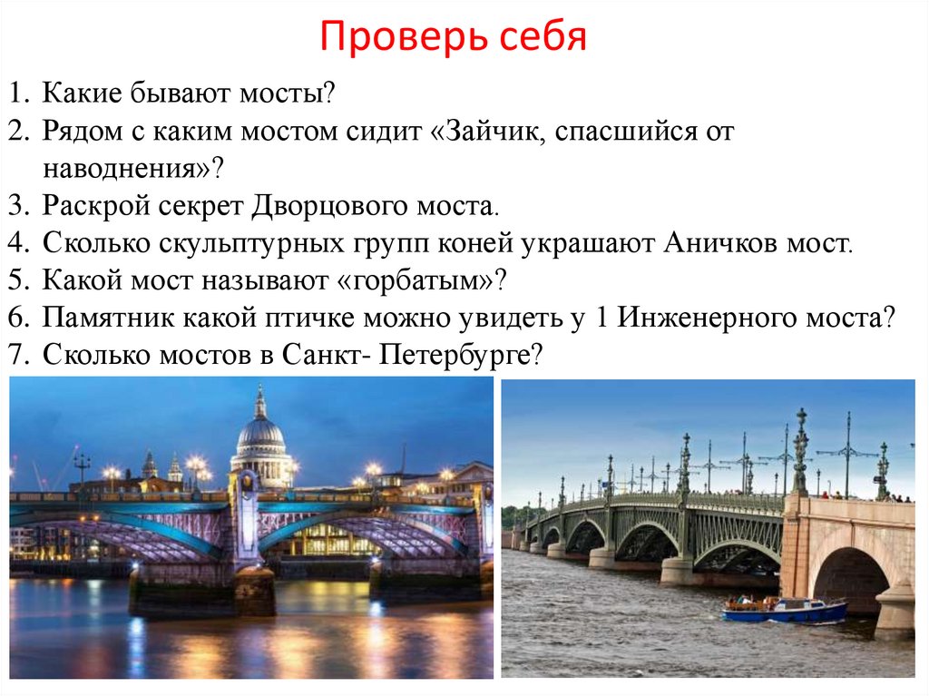 Проверь себя1. Какие бывают мосты?