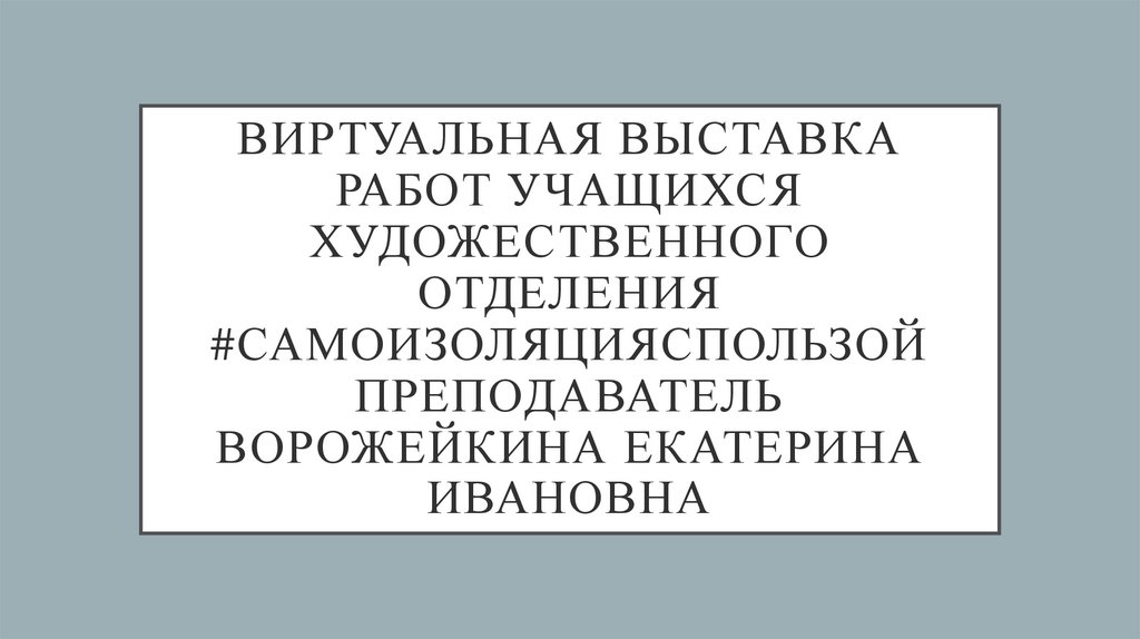 1. Виртуальная выставка работ учащихся художественного отделения #СамоизоляцияСПользой преподаватель Ворожейкина Екатерина