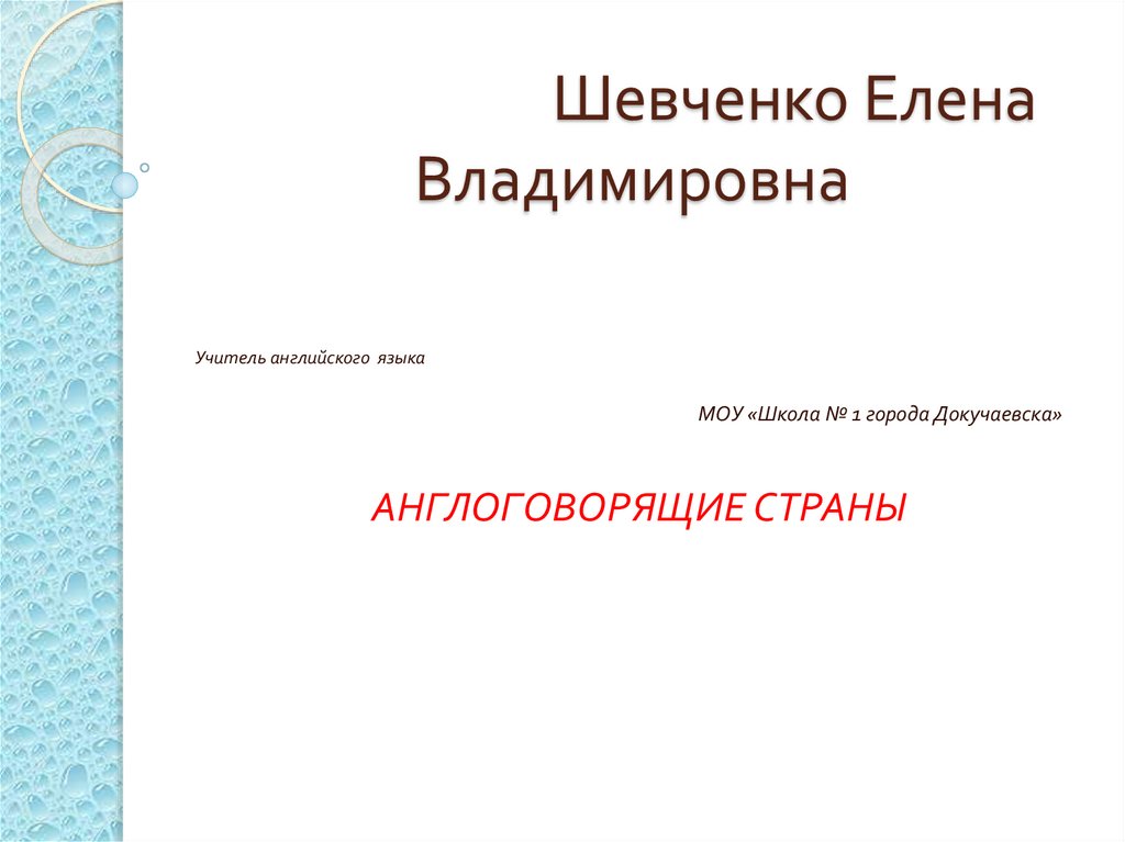 Учитель английского языкаМОУ «Школа № 1 города Докучаевска»