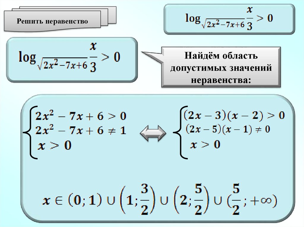Решить неравенствоОДЗ: x > 0, x ≠ 1