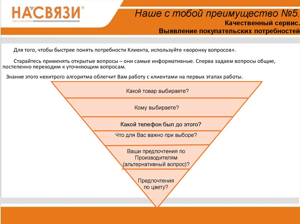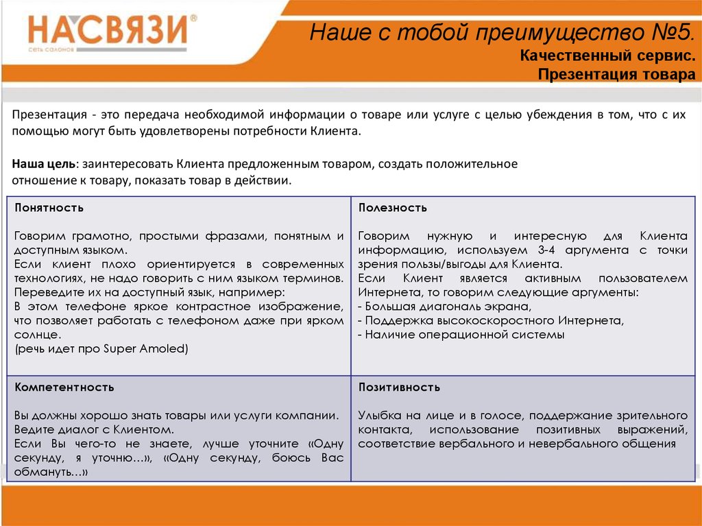 телефонах очень классная и т.д.» (при этом дать клиенту обе