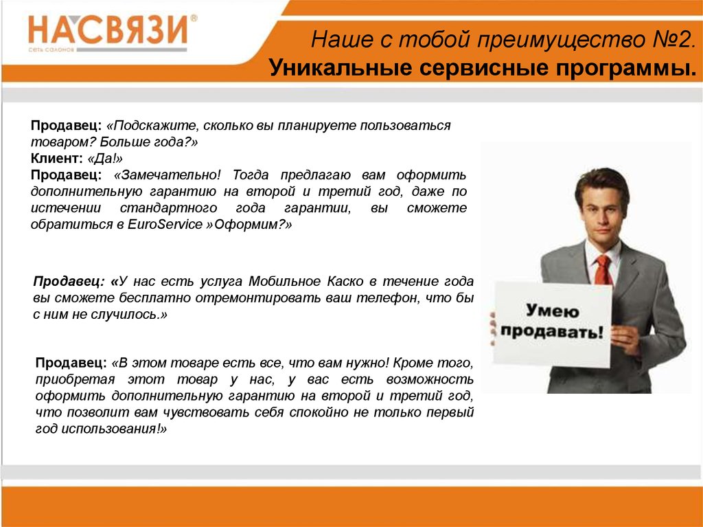 Продавец: «У нас сейчас проводится акция, когда вы покупаете салонов «На Связи»