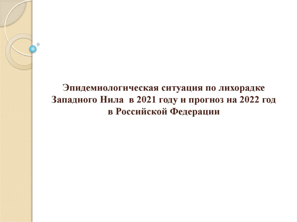 Эпидемиологическая ситуация по лихорадкеЗападного Нила в 2021 году и прогноз на 2022 год