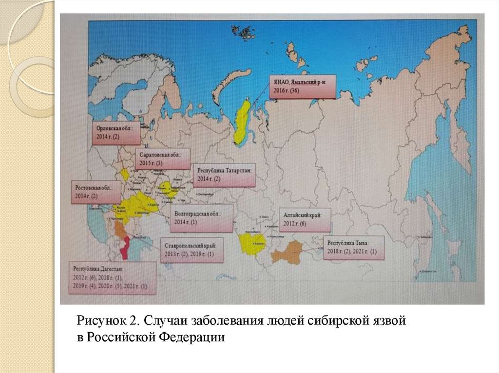 Рисунок 2. Случаи заболевания людей сибирской язвойв Российской Федерации