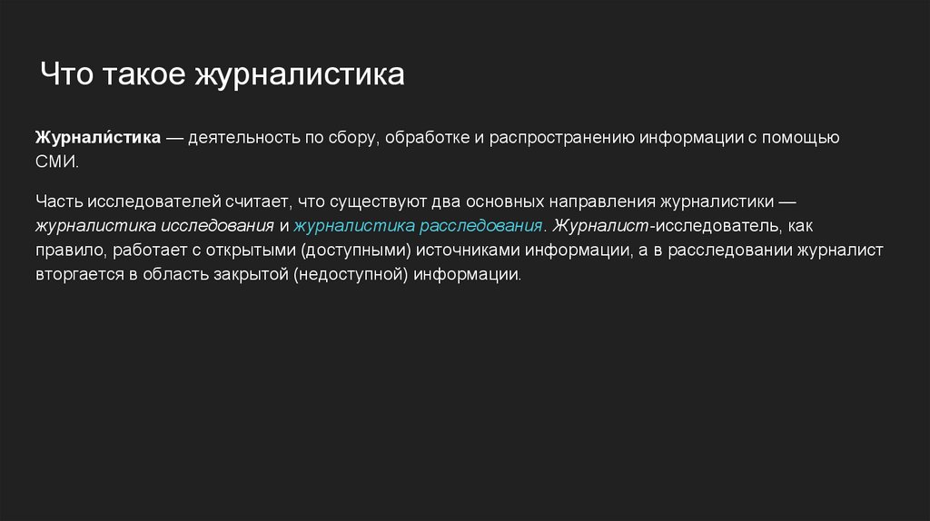 правило, работает с открытыми (доступными) источниками информации, а в расследовании журналист