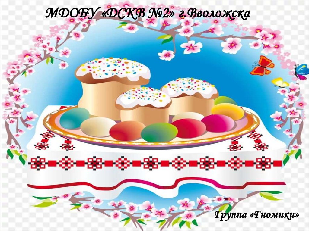 Группа «Гномики»2. Словно яркая раскраска, К нам домой, явилась пасха. Принесла в своём лукошке,