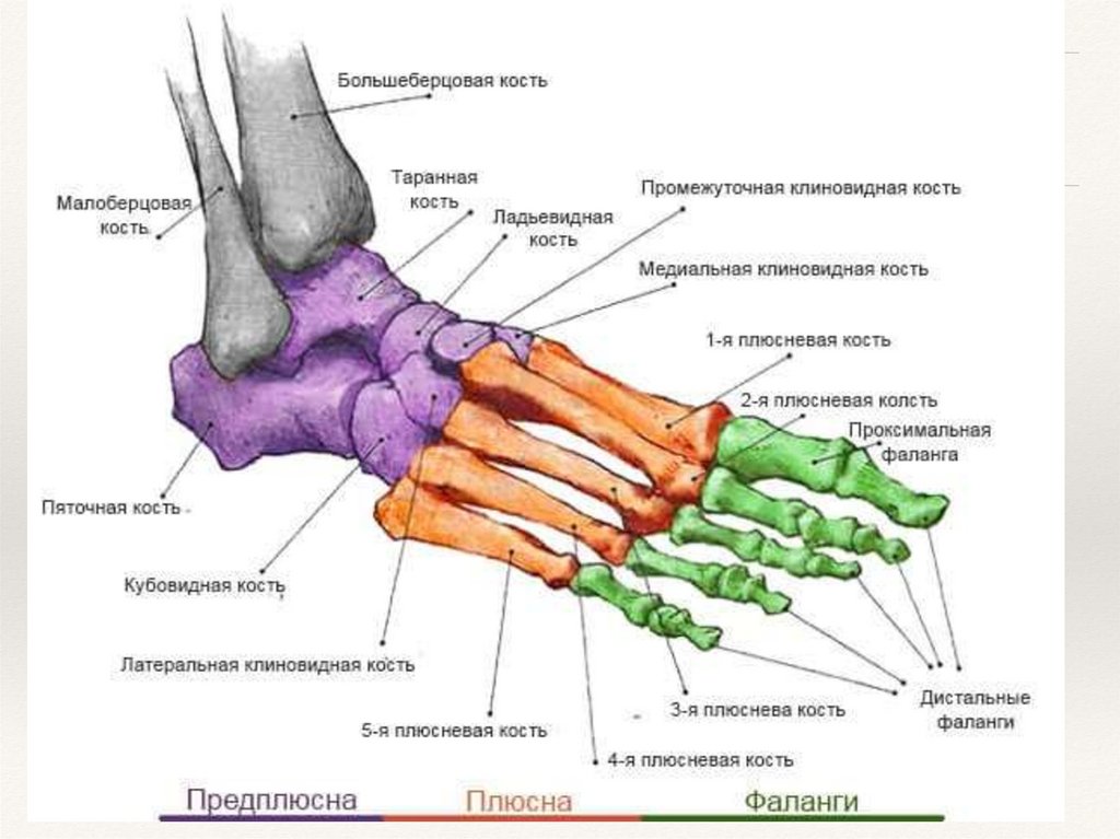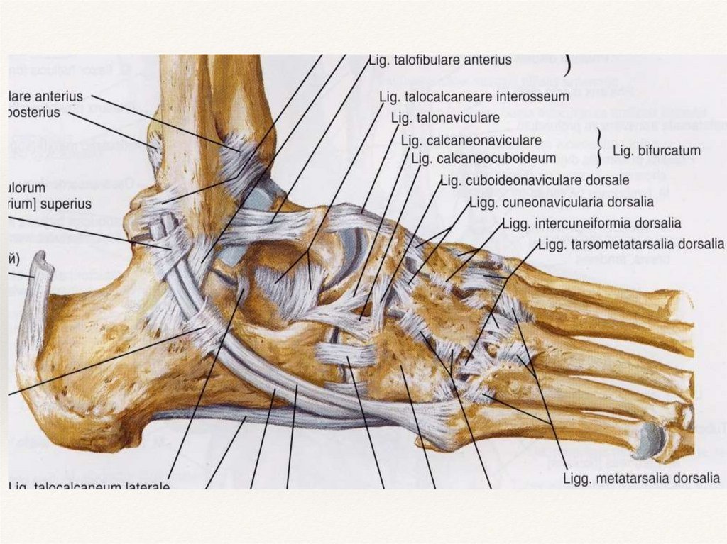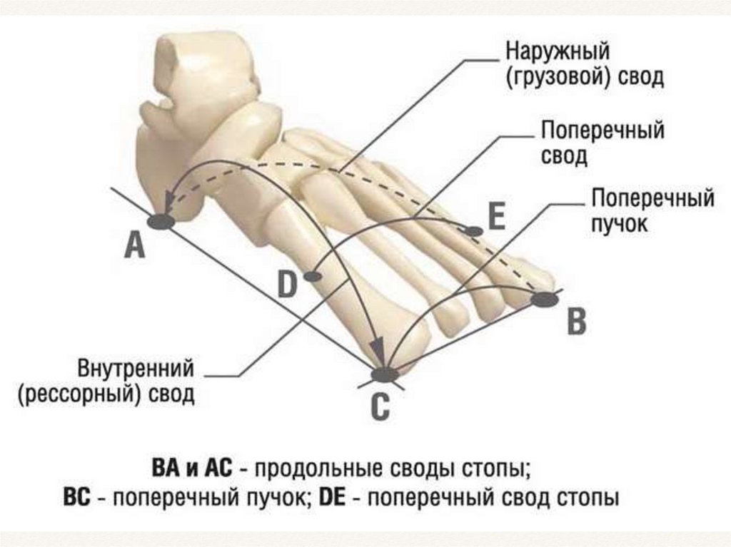 Скелет стопы, его сложный связочный и мышечный