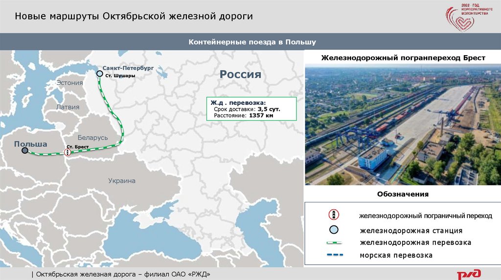 Новые маршруты Октябрьской железной дорогиКонтейнерные поезда в Польшу