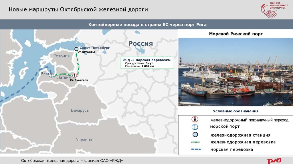 Новые маршруты Октябрьской железной дорогиКонтейнерные поезда в страны ЕС через порт Рига