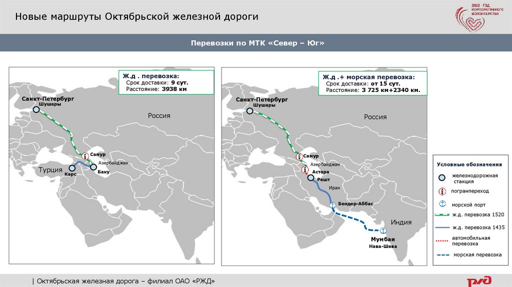 Новые маршруты Октябрьской железной дорогиПеревозки по МТК «Север – Юг»