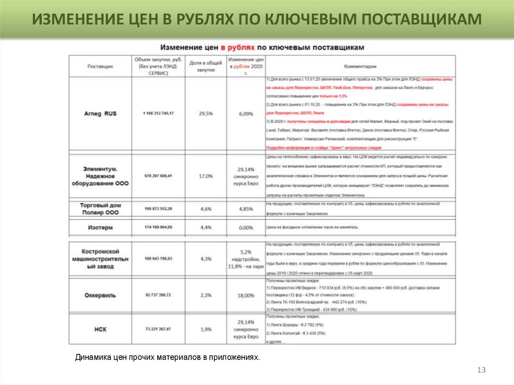 ИЗМЕНЕНИЕ ЦЕН В РУБЛЯХ ПО КЛЮЧЕВЫМ ПОСТАВЩИКАМДинамика цен прочих материалов в приложениях.