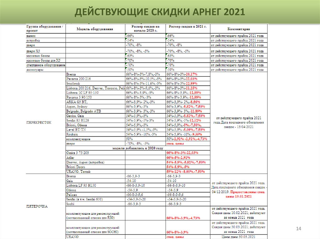 ДЕЙСТВУЮЩИЕ СКИДКИ АРНЕГ 202114