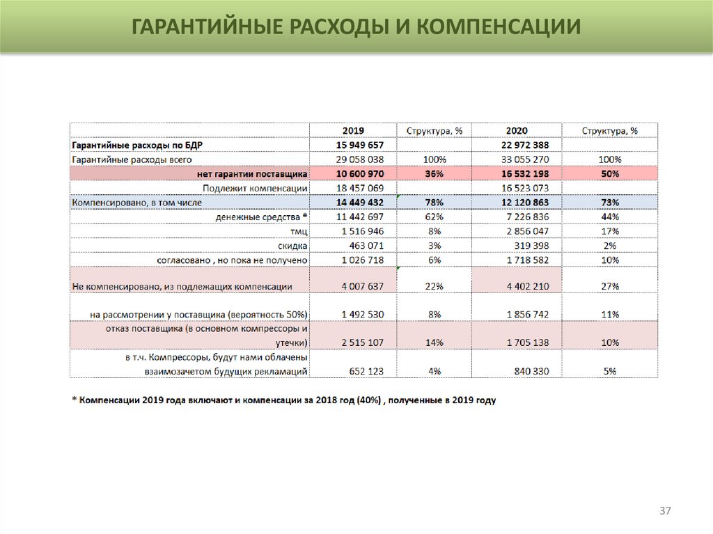 Отказы в гарантии по итогам экспертиз и возникшие в связи с этим долги за предоставленные тмц составили