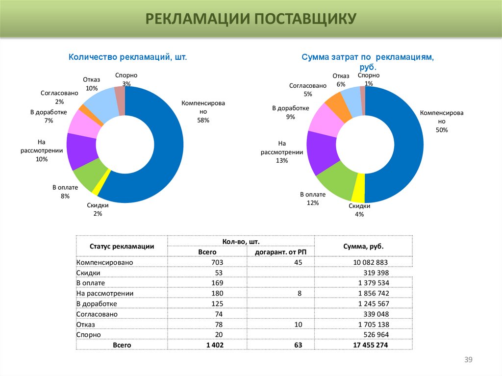 Рекламации на рассмотрении и в оплате составляют 3 575 324 руб. – 11%. Это в основном рекламации