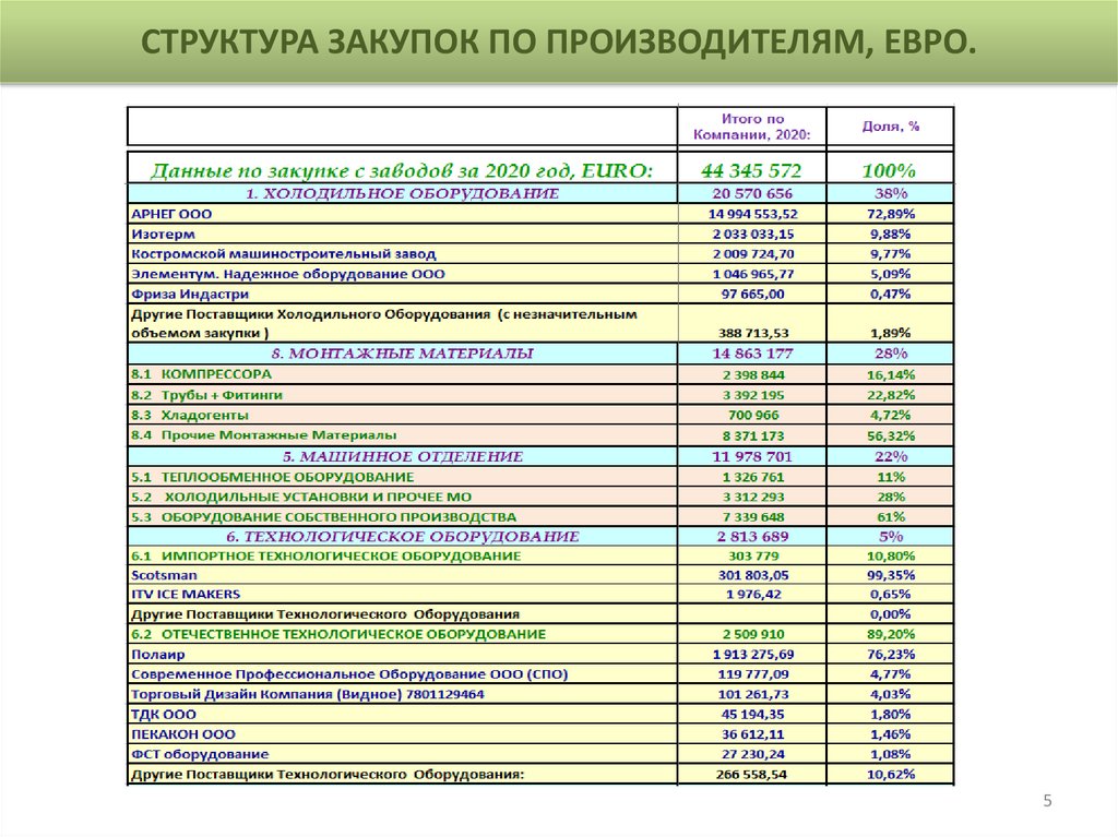 СТРУКТУРА ЗАКУПОК ПО ПРОИЗВОДИТЕЛЯМ, ЕВРО.5