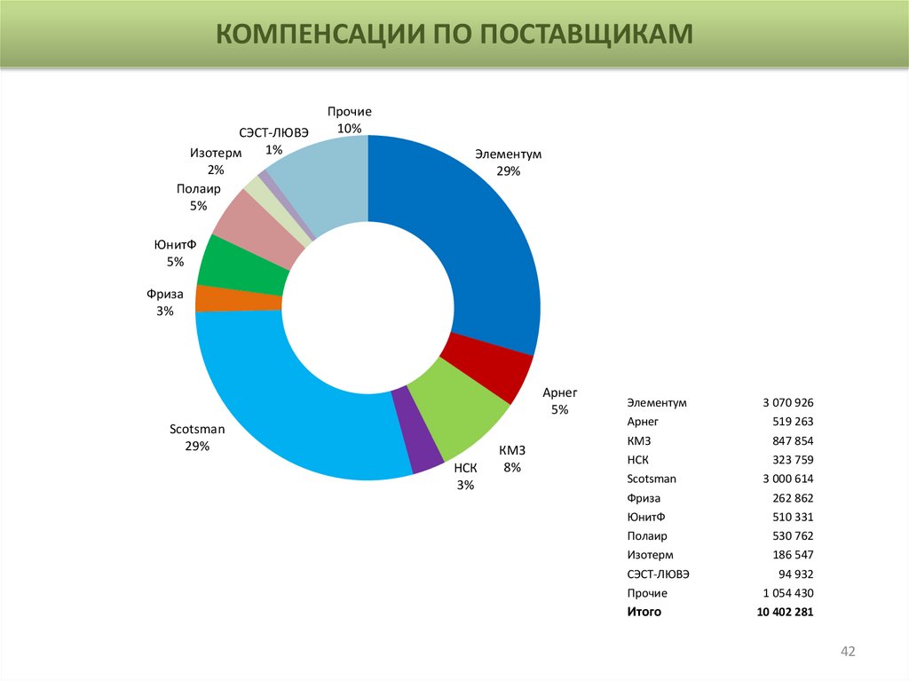 77% от расходов, выставленных поставщикам оборудования компенсировано