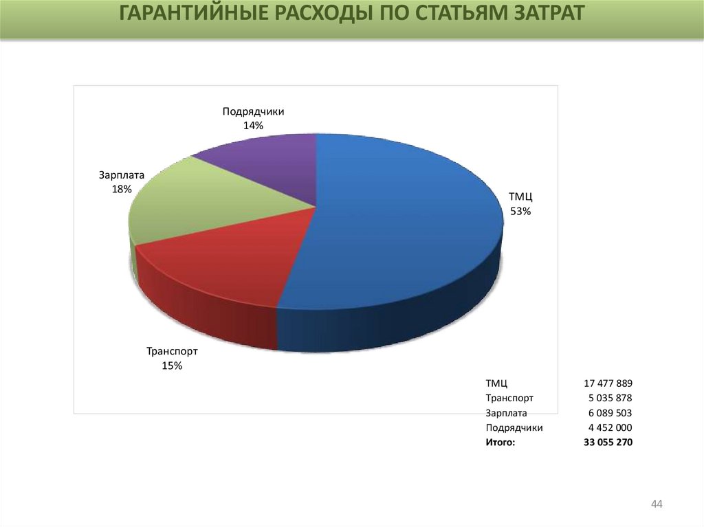 ГАРАНТИЙНЫЕ РАСХОДЫ ПО СТАТЬЯМ ЗАТРАТПодрядчики