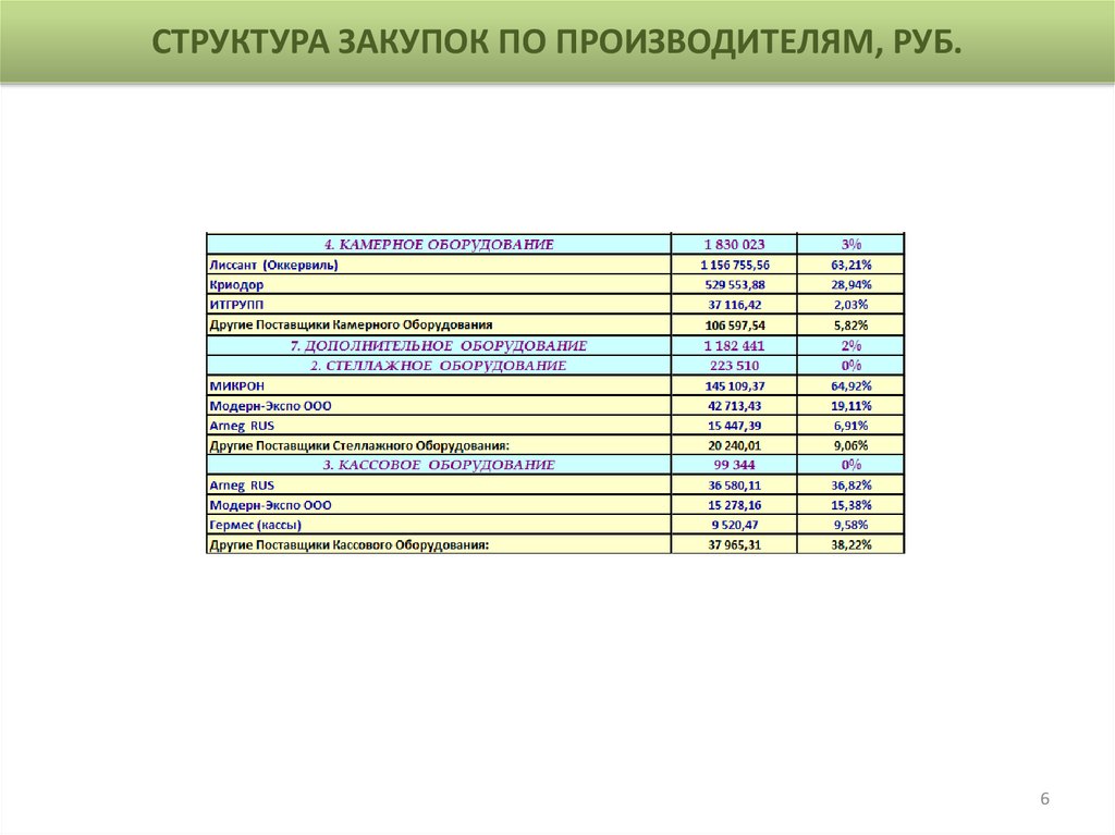 СТРУКТУРА ЗАКУПОК ПО ПРОИЗВОДИТЕЛЯМ, РУБ.6