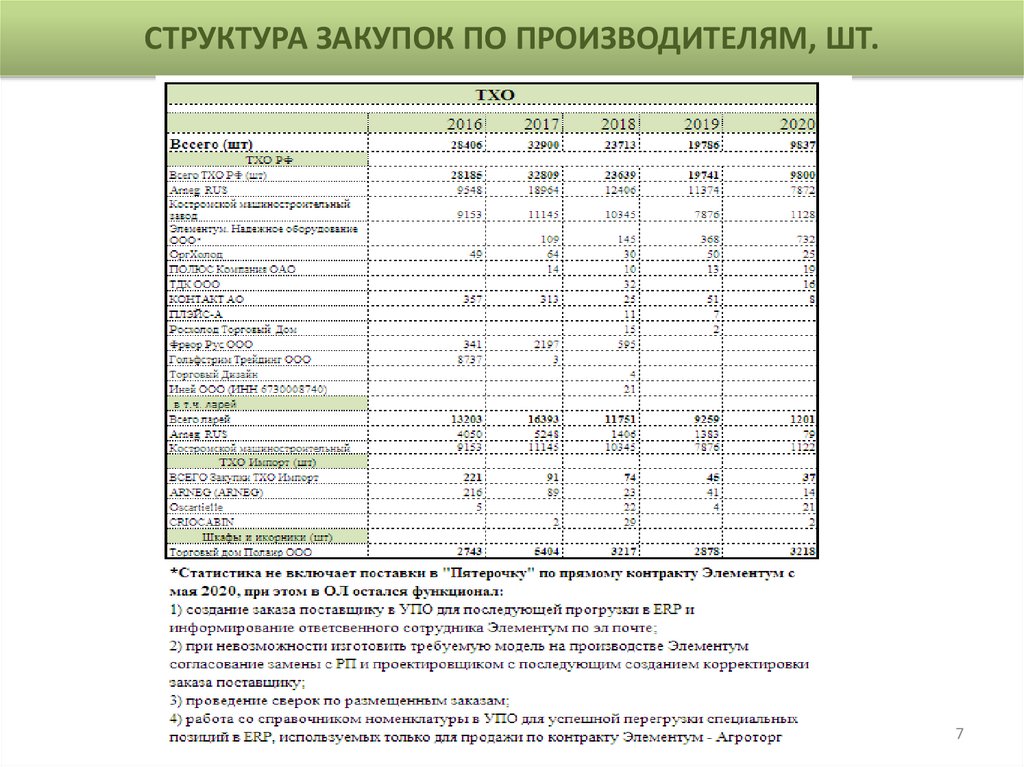 СТРУКТУРА ЗАКУПОК ПО ПРОИЗВОДИТЕЛЯМ, ШТ.7