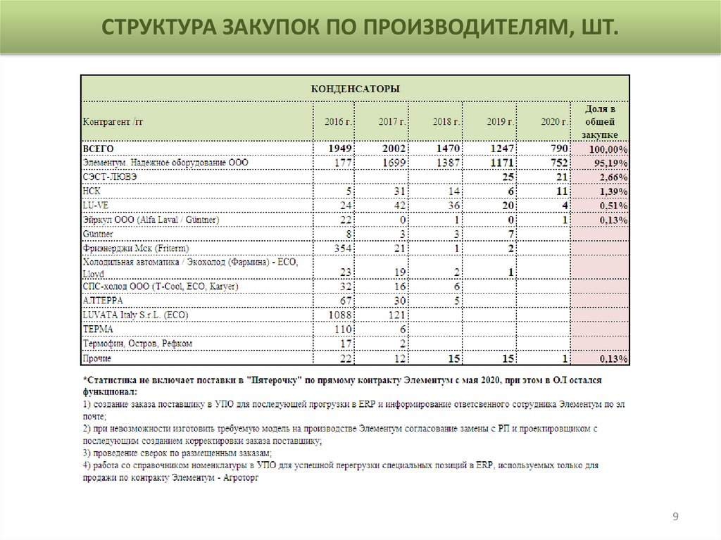 СТРУКТУРА ЗАКУПОК ПО ПРОИЗВОДИТЕЛЯМ, ШТ.9