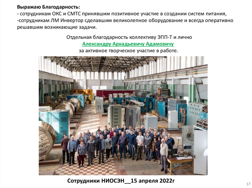 Выражаю Благодарность:- сотрудникам ОКС и СМТС принявшим позитивное участие в создании систем питания,
