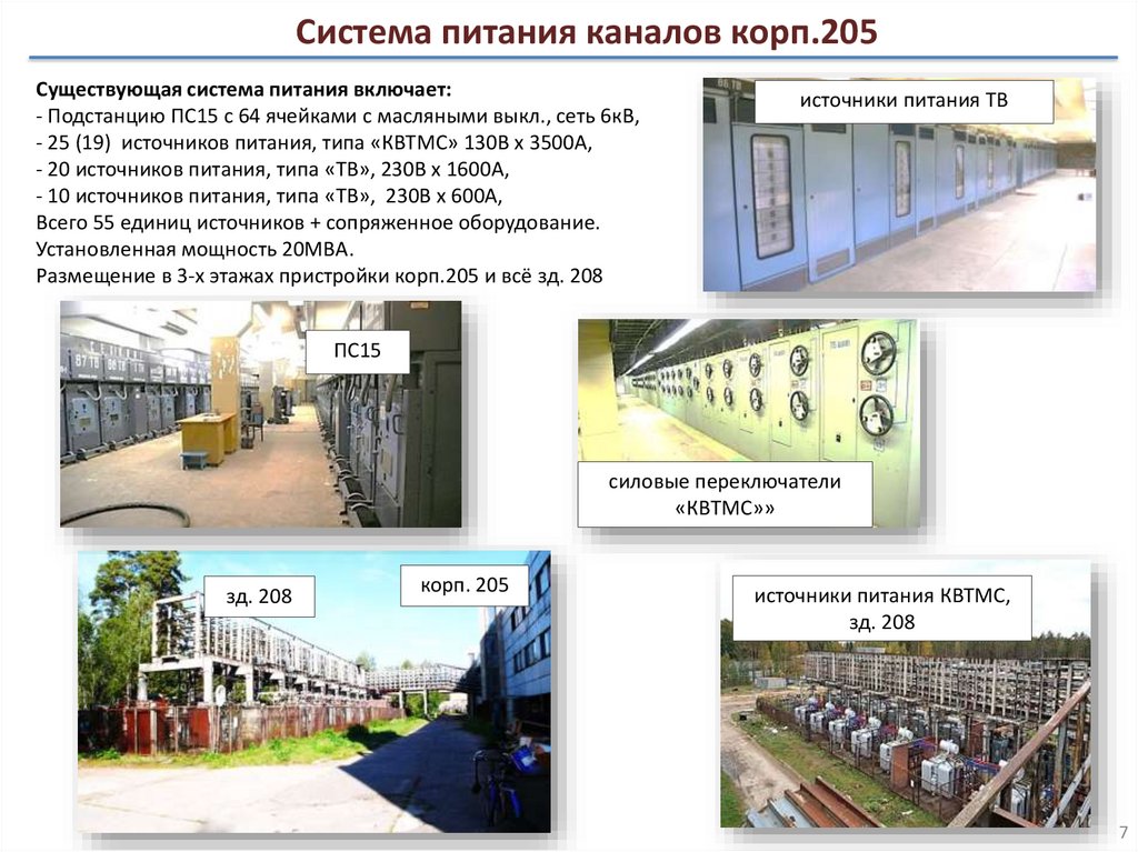 Система питания каналов корп.205Существующая система питания включает: