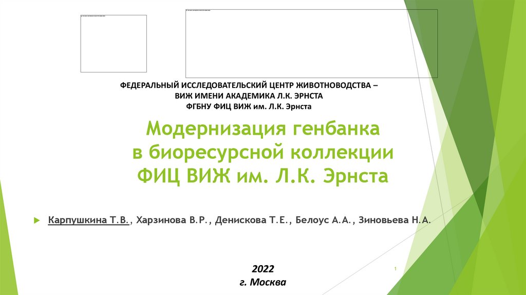 1. Модернизация генбанка в биоресурсной коллекции ФИЦ ВИЖ им. Л.К. Эрнста