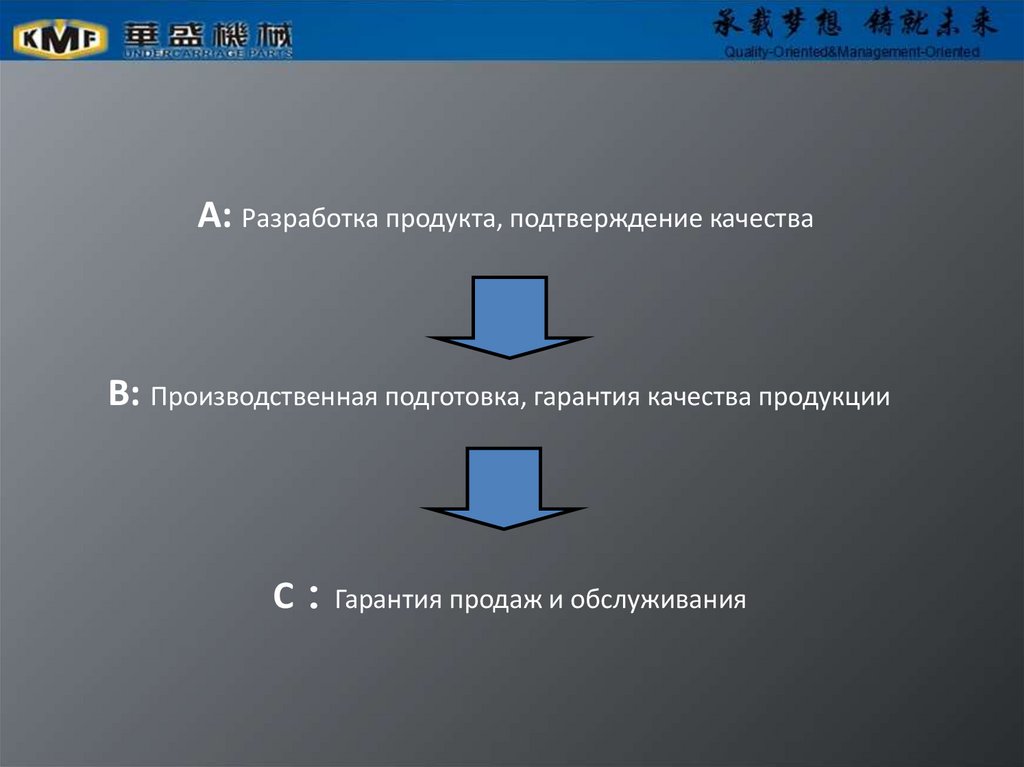 A: Разработка продукта, подтверждение качестваB: Производственная подготовка, гарантия качества продукции