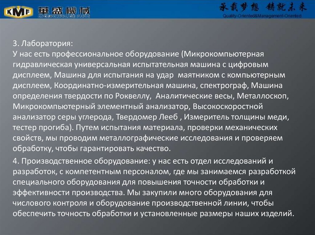4. Производственное оборудование: у нас есть отдел исследований и