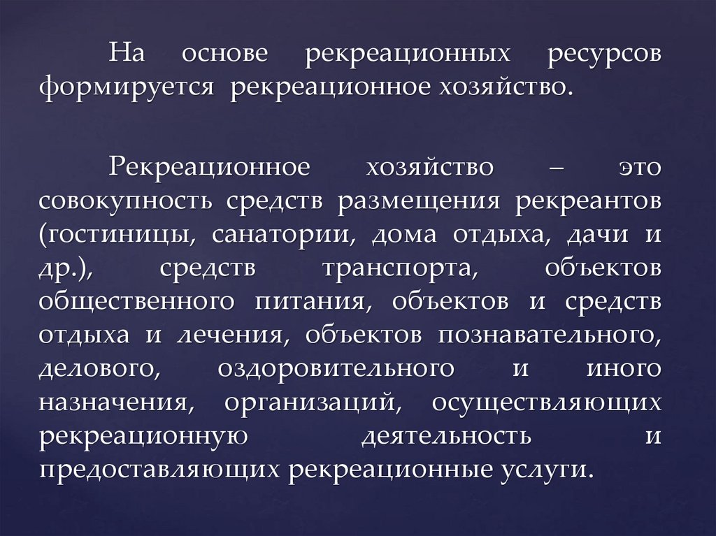 На основе рекреационных ресурсовформируется рекреационное хозяйство.