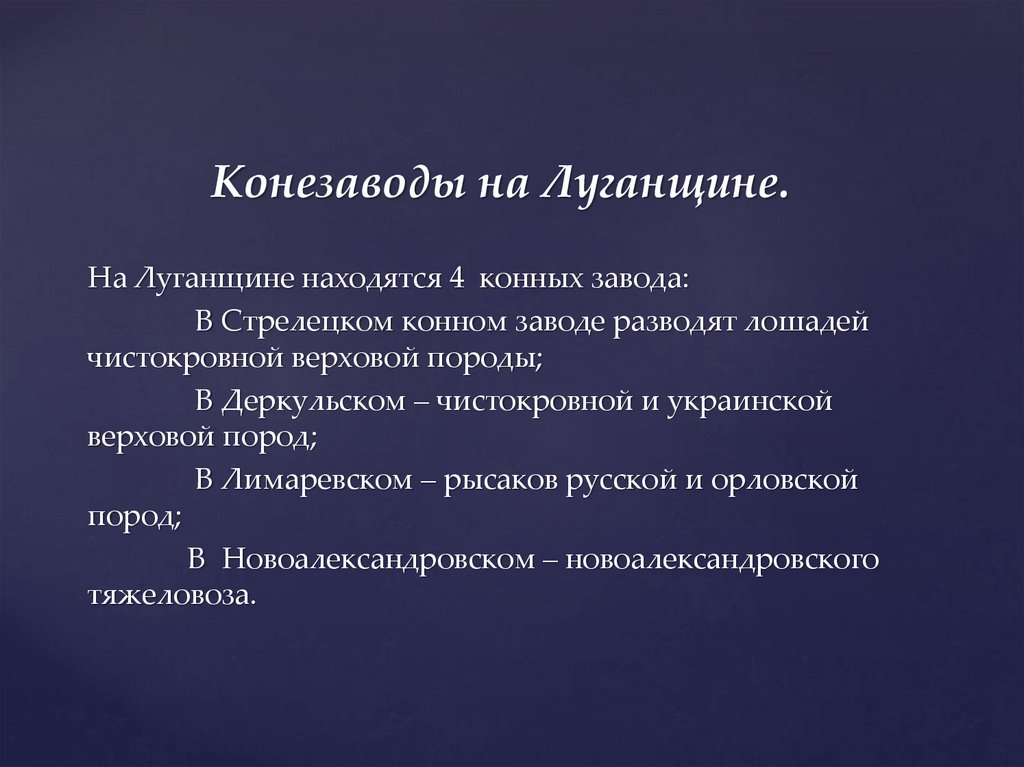 Конезаводы на Луганщине.На Луганщине находятся 4 конных завода: