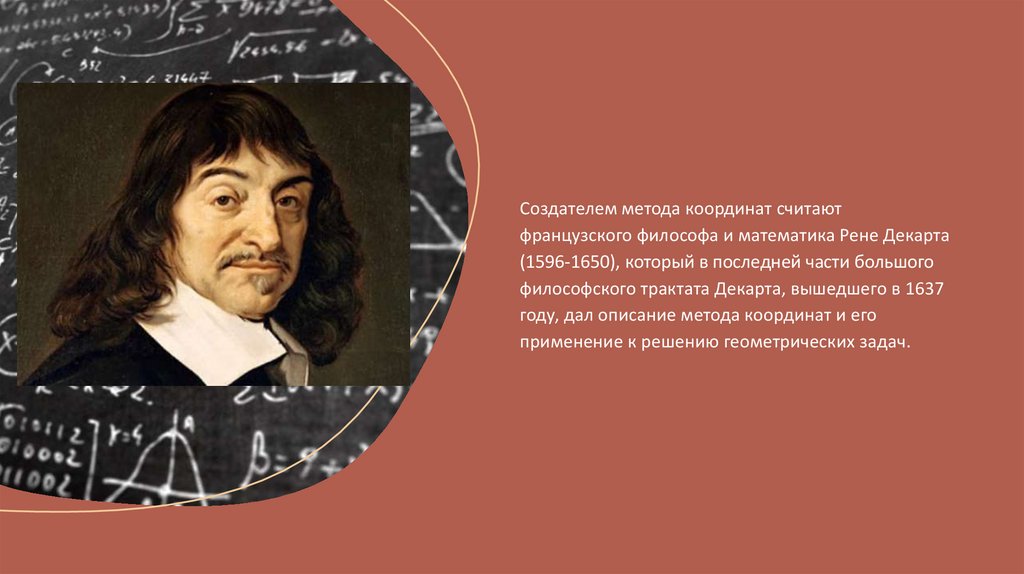 Создателем метода координат считаютфранцузского философа и математика Рене Декарта