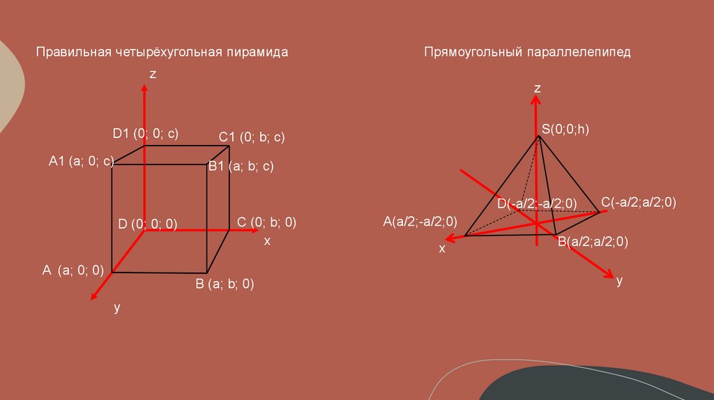 Правильная четырёхугольная пирамидаПрямоугольный параллелепипед