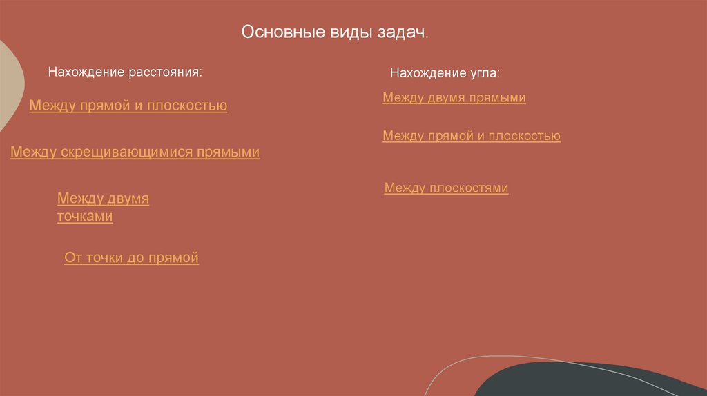 Основные виды задач.Нахождение расстояния: