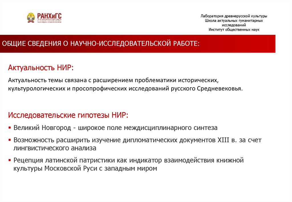 Лаборатория древнерусской культурыШкола актуальных гуманитарных исследований