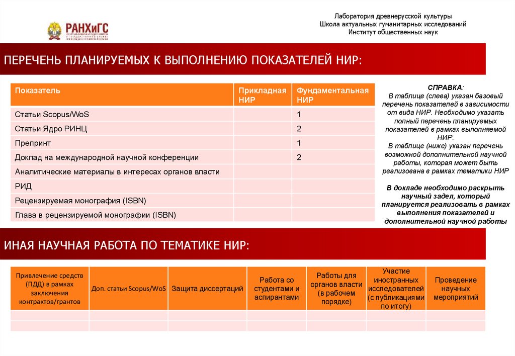 ИНАЯ НАУЧНАЯ РАБОТА ПО ТЕМАТИКЕ НИР: