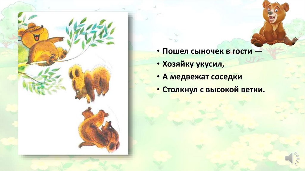 • Пошел сыночек в гости —• Хозяйку укусил,