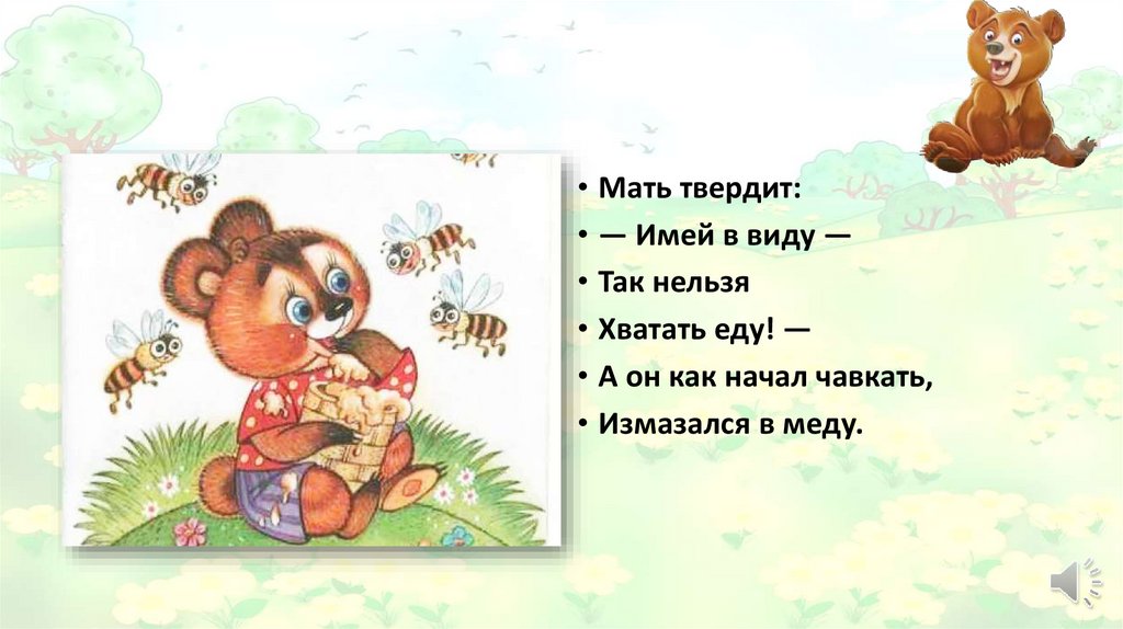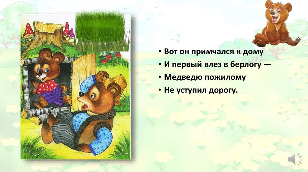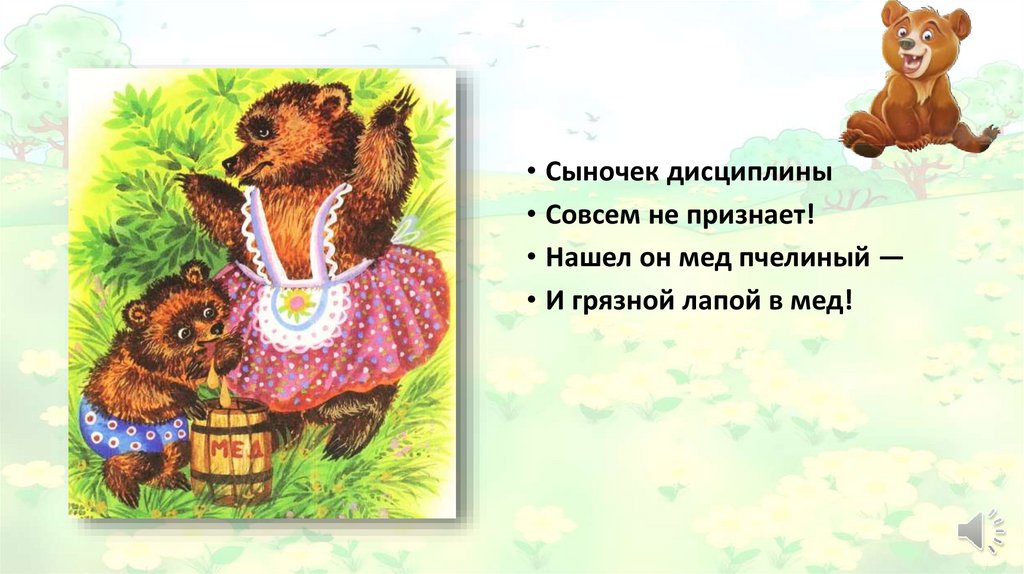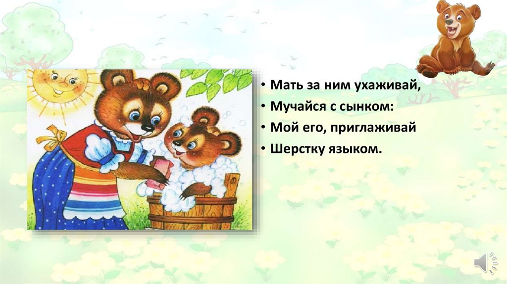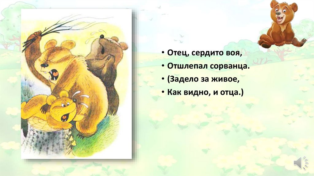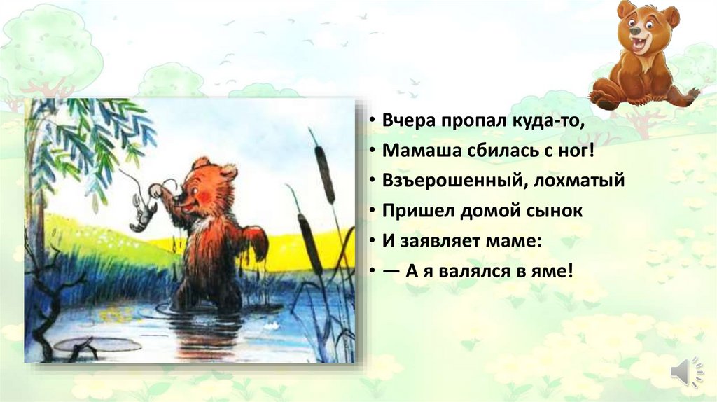 • Заревел в ответ медведь:• — Я при чем тут, женка?