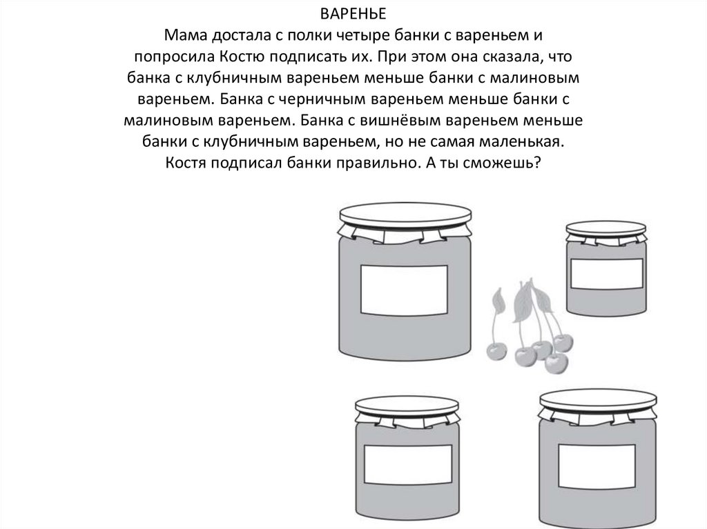 ВАРЕНЬЕМама достала с полки четыре банки с вареньем и