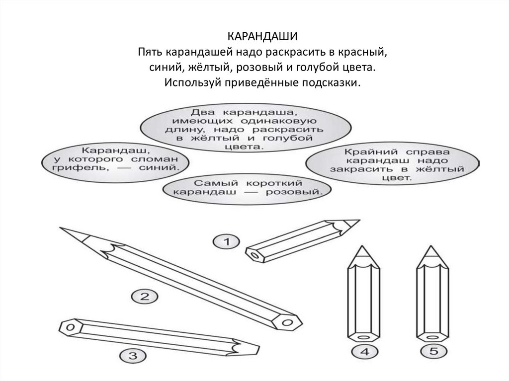 КАРАНДАШИПять карандашей надо раскрасить в красный,