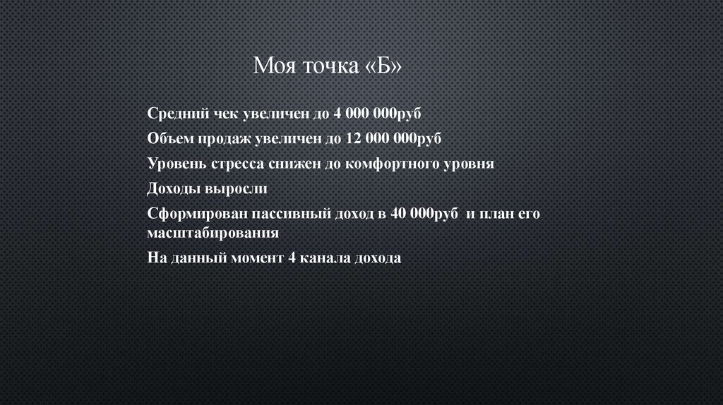Моя точка «Б»Средний чек увеличен до 4 000 000руб