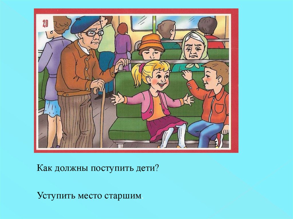 Как должны поступить дети?Уступить место старшим.