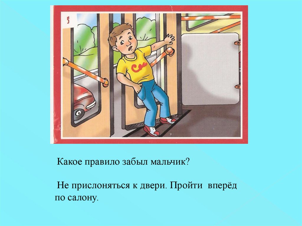 Какое правило забыл мальчик?Не прислоняться к двери. Пройти вперёд