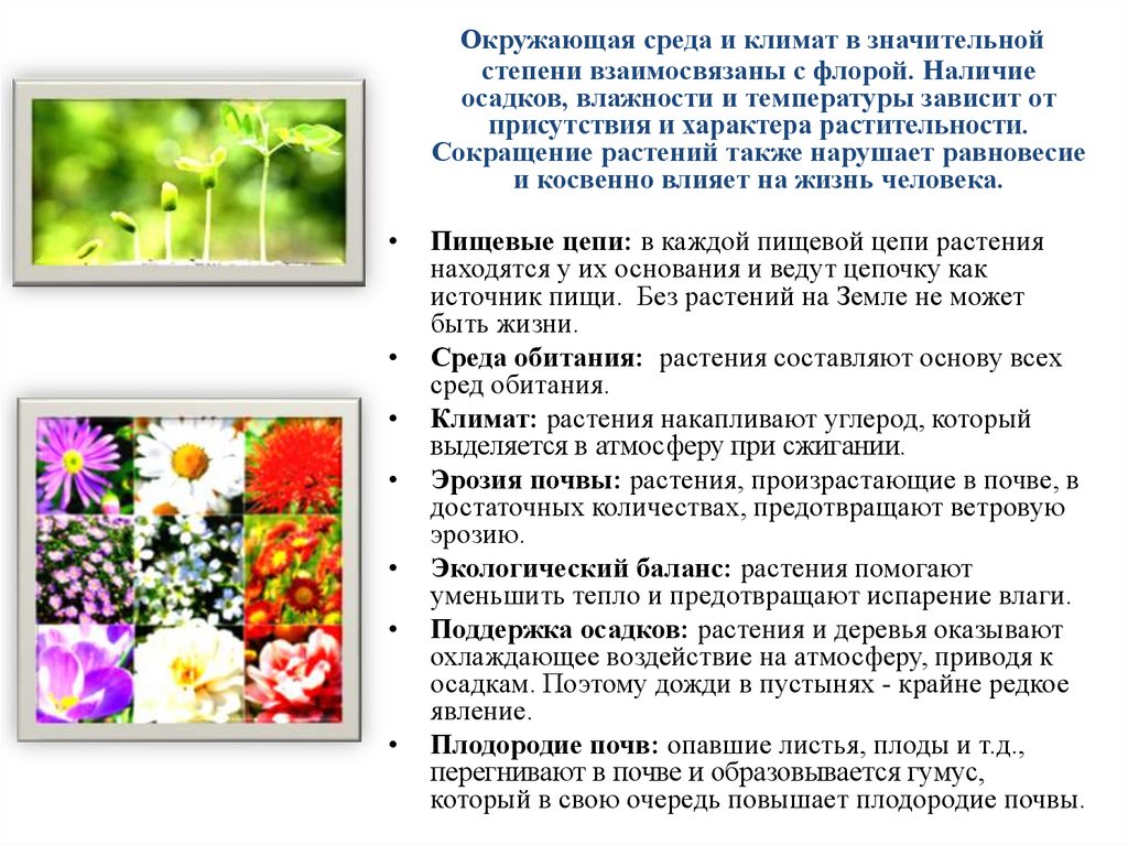 Окружающая среда и климат в значительнойстепени взаимосвязаны с флорой. Наличие